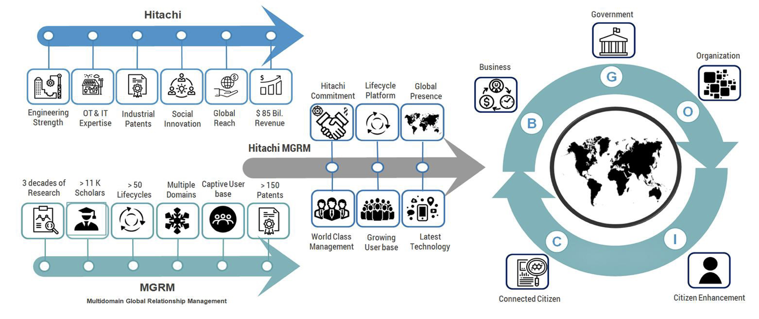 With similar philosophies and the history of collaboration, Hitachi MGRM Net (HMN), Limited, was formed in April 2018 with 74% shareholding by MGRM and 26% by Hitachi. HMN crafts social innovation solutions under multiple domains covering citizen lifecycle. When two industry leading organizations, bound by their strong social values, come together, they synergize the complementarity of their Strengths & Goals. The resultant organization, Hitachi MGRM Net, leverages the Global reach, technical prowess, extensive global research, IP & Patents and the deep managerial & executive might of its parents to deliver the societal impact at the individual level. The combination of these two companies makes Hitachi MGRM Net unique and formidable, to not only drive transformation for individual citizens, but to also in the process generate significant revenues.